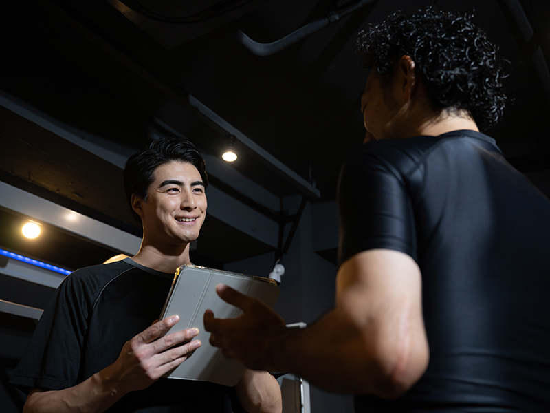 まずはお気軽にお電話またはメールでお問い合わせください。ご来店時には、健康状態やこれまでの運動歴、病歴、鍛えたい部位などについて丁寧にカウンセリングを行い、実際に身体の状態を測定します。